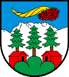Die Berge im Hintergrund stellen den Piz Terri dar (Greina-Ebene), und das Tor (Portal) de Porclas befindet sich am Anfang der Val Lumnezia. Piz Terri und die Porclas schliessen sozusagen die neue Gemeinde ein und fungieren als eigentliche Grenzmarken. Der Vorschlag von Pater Flurin beinhaltet einige Knacknüsse für die Heraldiker: a) Die Mischfarbe Grau ist keine heraldische Farbe. b) Die Porclas ist perspektivisch dargestellt, was in der Heraldik nicht zulässig ist. c) Berge in ihrer natürlichen Darstellung sind ebenfalls nicht erlaubt, denn die heraldische Fachsprache, das Blasonieren, beschreibt ein Wappen mit möglichst wenigen Ausdrücken so genau, dass jeder heraldisch bewanderte Zeichner das Wappen korrekt darstellen kann, auch wenn er es noch nie gesehen hat! Das ist aber mit Silhouetten von Bergen unmöglich! Siehe auch unsere Kritik am Wappen der Walliser Gemeinde Obergoms. Die Probleme der grauen Farbe und der perspektivischen Darstellung sind behoben worden. Die Silhouette ist etwas stärker stilisiert, bleibt aber nach wie vor unheraldisch. Weiter ist aus nicht nachvollziehbaren Gründen ein viel zu dunkles Rot gewählt worden. Es grenzt eher an das heraldisch mögliche, aber in der Schweiz völlig unbekannte Purpur. In einigen kantonalen Wappenbüchern sind die Werte der Druckfarben für das jeweilige Kantons- und die Gemeindewappen verbindlich festgelegt. Blasonierung: Wegen der Silhouette nicht möglich.