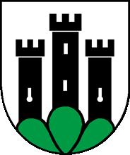 Blasonierung: Halb gespalten und geteilt; 1: in Schwarz weisse Spitze, belegt mit aufrechtem schwarzem Steinbock, rot bewehrt; 2: in Weiss auf grünem Dreiberg drei gezinnte schwarze Türme; 3: In Weiss aufrechter schwarzer Bär, ausgerissene grüne Tanne mit rotem Stamm tragend.
