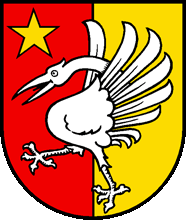 Das 1922 gewählte Wappen zeigt den Kranich, |